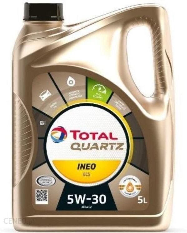 Olej silnikowy Total Quartz INEO ECS 5W-30 zalecany do stosowania w najnowocześniejszych silnikach wysokoprężnych, również wyposażonych w filtry DPF, jak również w większości silników benzynowych. Może być także stosowany w silnikach starszej konstrukcji, produkowanych po roku 1999. Specjalnie opracowany tak, aby spełniał wymagania najsurowszych norm i specyfikacji. Olej silnikowy INEO ECS 5W30 do stosowania w jeździe sportowej, miejskiej i po autostradzie, w samochodach osobowych użytkowanych w nawet ekstremalnych warunkach eksploatacyjnych.